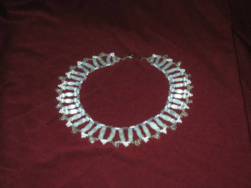 Белое колье на бордовом фоне